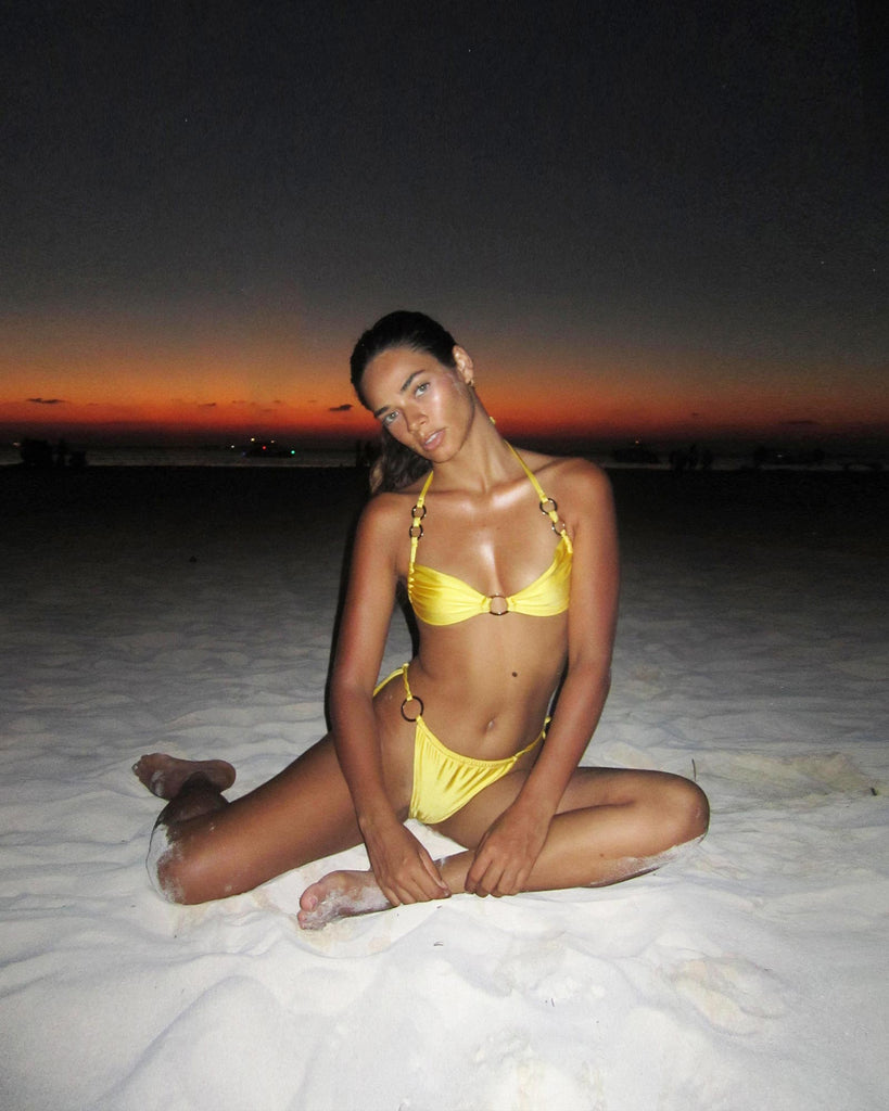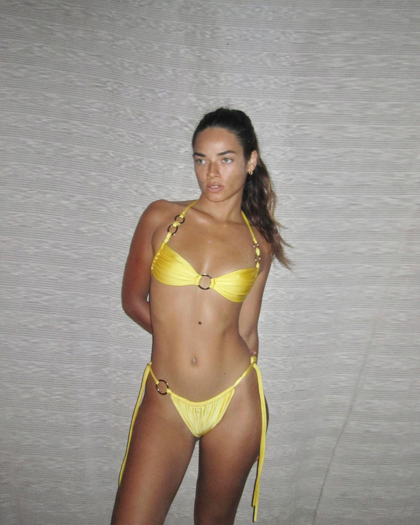 Top halter ajustable, con detalle en argollas de acero inoxidable.
